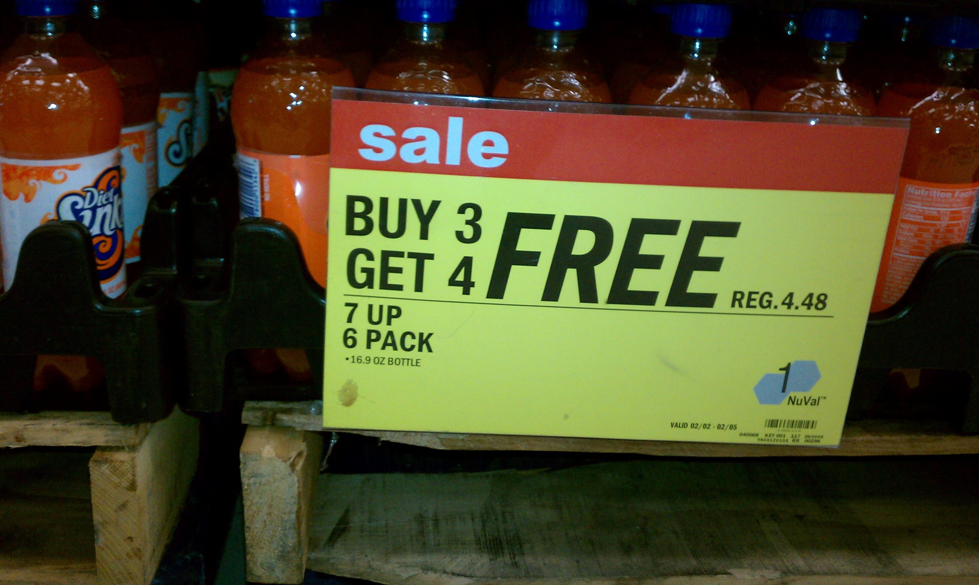 While at Meijer today we noticed a sale for buy 3 – 6-pk, 16.9 fluid oz 7-up products (7-up, Vernor’s, A&W Rootbeer, etc) and get 4 for FREE so it is like paying $1.92 per 6-pack. I am not sure if there are any coupons out there to sweeten the deal, but this is a decent deal if you are looking for pop!