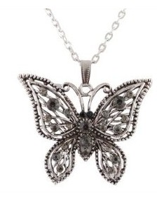 Right now get a Ladies Silver Butterfly Design Gun Metal Stoned Pendant with an 18 Inch Adjustable Link Chain Necklace for only $3.96 + FREE shipping