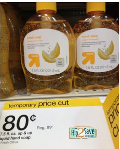 Right now you can snag a sweet Target Coupon Deal on Up&Up Liquid Hand soap. It is on price cut for $0.80 and there is a new $0.50/1 printable coupon plus a Target cartwheel coupon making each bottle ONLY $0.28. Just in time for back-to-school shopping.