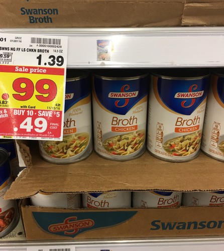 Use $0.40/4 Swanson Broth Cans 14oz+, exp. 1/1/17 (SS 11/6/16)