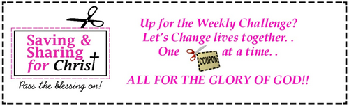 Today is “Sharing Sunday” on the blog “Take the 5-item challenge” Not sure what it is? I challenge each of you to donate 5 items to a local food bank/pantry or family you know in need and then challenge each of your friends to share this on your page and get 5 of your friends involved and challenge them to share on their FB page as well. . let’s see how many we can get involved. None of us can help everyone, but all of us can help someone and when we do we SERVE Jesus!! Let’s change our communities . . ONE life at a time . . . one coupon at a time. . . all for the GLORY OF GOD!! Whose in? We have 7599 new visitors on the blog + 11497 people on the FB page + you challenging 5 people = 477,400 items!! Please share this post and get your family/friends involved ~ it’s that easy and we can do it!! Whose in??