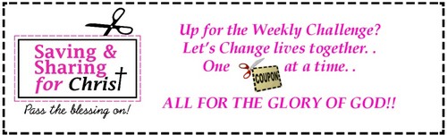Whose excited for the weekly challenge? I know I sure am. Happy Sunday morning to you all!! I love to see the results of this challenge every week. I just know we can do amazing things all for the glory of God, but we ALL HAVE TO JOIN TOGETHER. The challenge is simple, but the impact is LIFE CHANGING for many!! This is such an easy way to be a part of something “HUGE”, so here is my challenge for ALL of you this week!! My prayer continues to be that everyone will accept it and do “something”. As of this morning we had 8262 “LIKES” on our FACEBOOK PAGE, but 4467 Unique visitors that have read and/or visited the blog this week. I am asking EVERYONE that takes the time to look at this blog or has “LIKED” us on FB to please accept this challenge. This is such a tangible way of helping our communities and start changing lives . . . one at a time. All YOU NEED to do is pick up 5 extra items this week and donate to a local food pantry, a shelter, or a family that you know that is in need. None of us can help EVERYONE, but ALL OF US can help SOMEONE, and when we help them, WE SERVE JESUS!! If all 8262 people on the FB page did that, that is 41,310 items being donated. THANK YOU JESUS!! I have listed several FREE items below, thus meaning it is NOT costing you any money, just your time to go shopping and most of us will already be shopping. Just think of the impact we can have on our communities. Now if you add all the people who have visited the blog to that number, total number of items being donated would be 63,645!! We all have to join together and do something “small” (our 5 items) and the end result is “HUGE”. Again, make it one better than that and each of you challenge 5 of your friends to take the challenge on or ASK THEM TO POST THIS TO THEIR FB PAGE and now the donations increase to 318,225 items. God can take our donations, bless them, and use it to touch many!! God wants us to bring what we have to HIM. Please prayfully considering joining us in this mission. ALL THE GLORY GOES TO GOD AND GOD ALONE!!