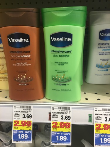 Kroger is having another Mega Event, buy 5, save $5 instantly (mix and match participating products) and the Vaseline Intensive Care Lotion is included for $1.99. In addition, we have a $2/1 coupon making this completely FREE. Great time to stock up and/or donate 🙂 🙂
