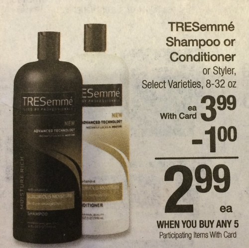 Use $2/1 Tresemme Shampoo or Conditioner, exp. 8/23/15 (RP 07/26/15) [ETS; Limit 2] (doubles to $4)