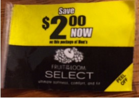 Use $2/1 Fruit of the Loom selects peelie (found on package)